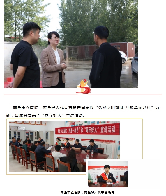 商丘市立醫(yī)院來到商丘市民權縣白木村委開展“四送一助力”活動和“商丘好人”宣講活動