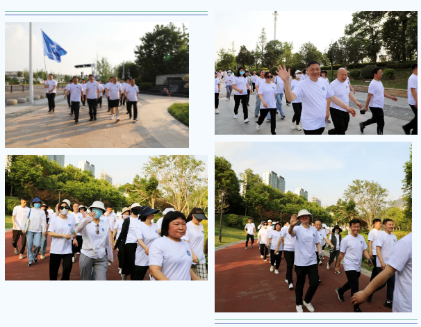 活動(dòng)中,150余名干部職工組成徒步方隊(duì),健步走在景色優(yōu)美的日月湖旁,欣賞錦簇花團(tuán),呼吸清新空氣,在綠蔭掩映的環(huán)湖步道上談笑風(fēng)生,形成一道亮麗的風(fēng)景線。
