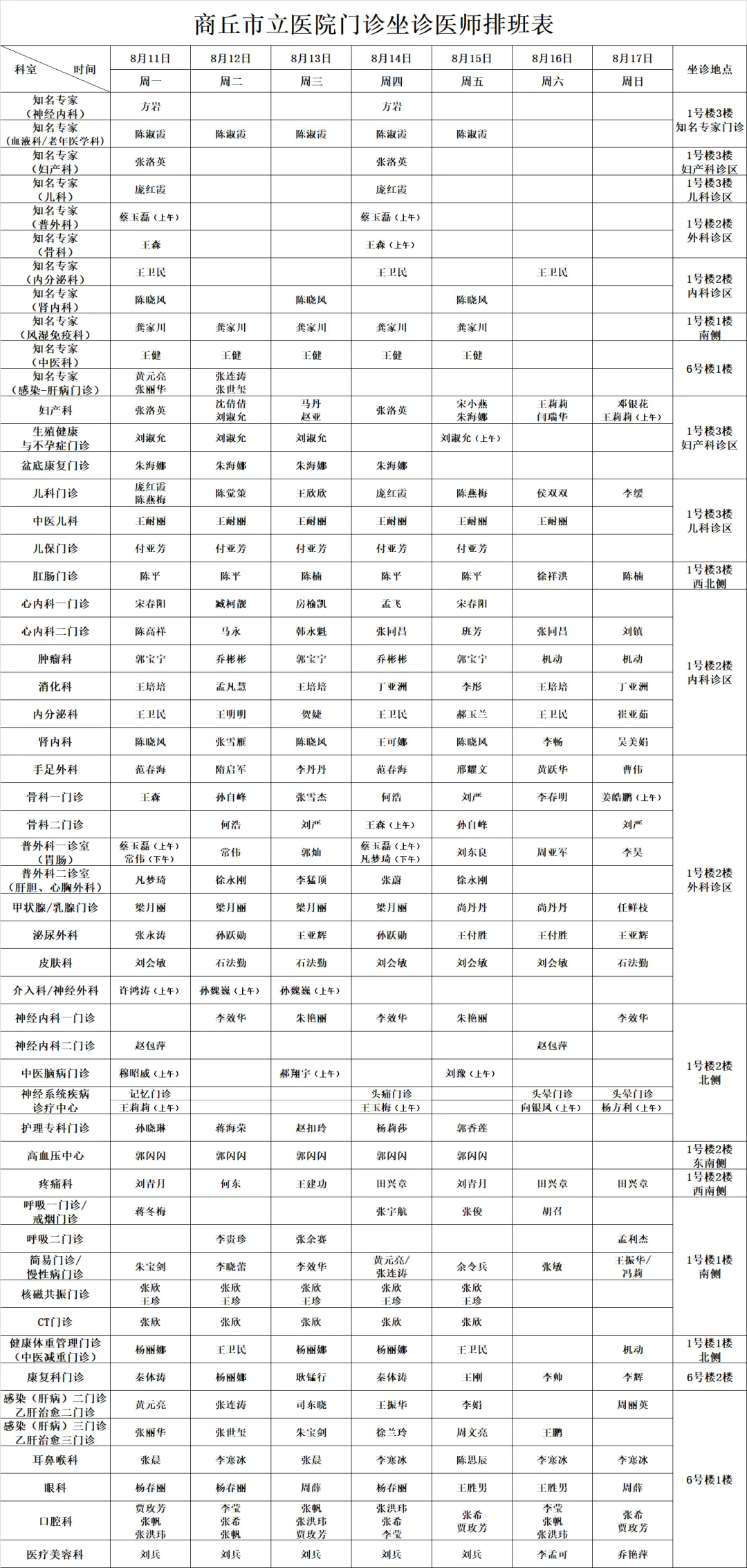 專家坐診表